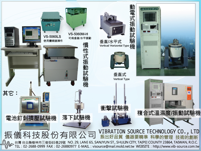 本公司陸續研發創新技術,提升國內振動試驗技術,並與工業技術研究院合作開發,增加產品多樣化,技術研發更精良,造福國內外科技電子、汽機車產業界,並承蒙華碩電腦、微星科技、技嘉科技、光寶電子、無敵科技、奇菱科技、帝寶工業、國喬光電、盟立自動化、大同工學院、華梵大學、標準檢驗局台北、高雄、新竹分局…….等國內大廠及知名院校的愛護使用,今後更當竭盡所能致力於提高生產效率確保品質完善。